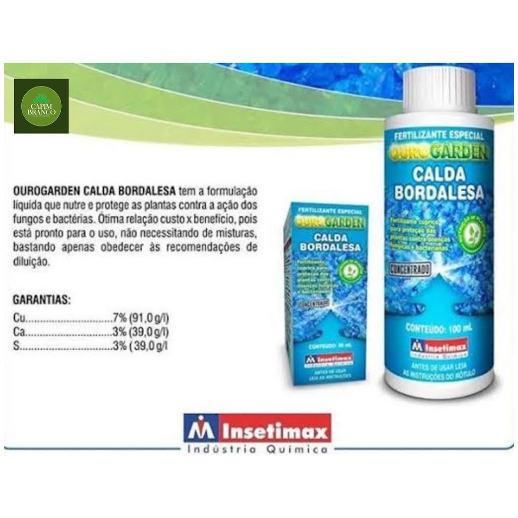 Ourogarden Calda Max (Bordalesa) tem a formulação líquida que nutre e protege as plantas contra a ação dos fungos e bactérias. Ótima relação custo x benefício, pois está pronto par auso, não necessitando de misturas, bastando apenas obedecer às recomendações de diluição. A solução certa para sua Jardinagem! Tipo de produto: Líquido. BENEFICÍOS: Proteger as plantas contra a ação dos fungos e bactérias.