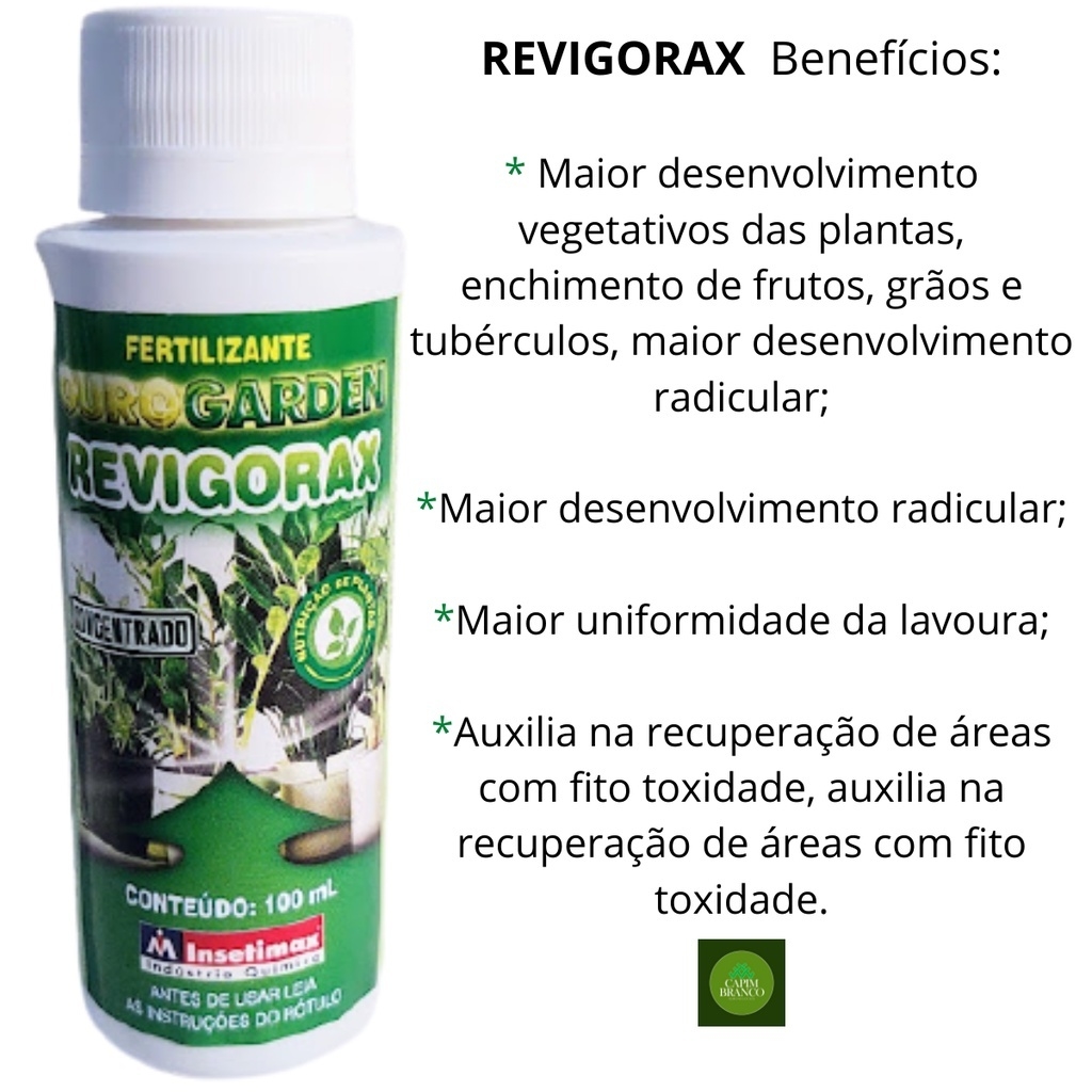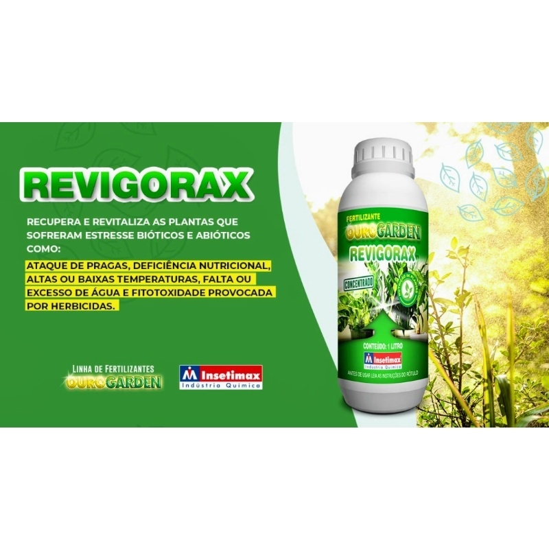 INDICAÇÃO: Ourogarden Revigorax é um fertilizante organomineral classe A com alta concentração de carbono orgânico, altamente solúvel, com macro e micronutrientes complexados com aminoácidos