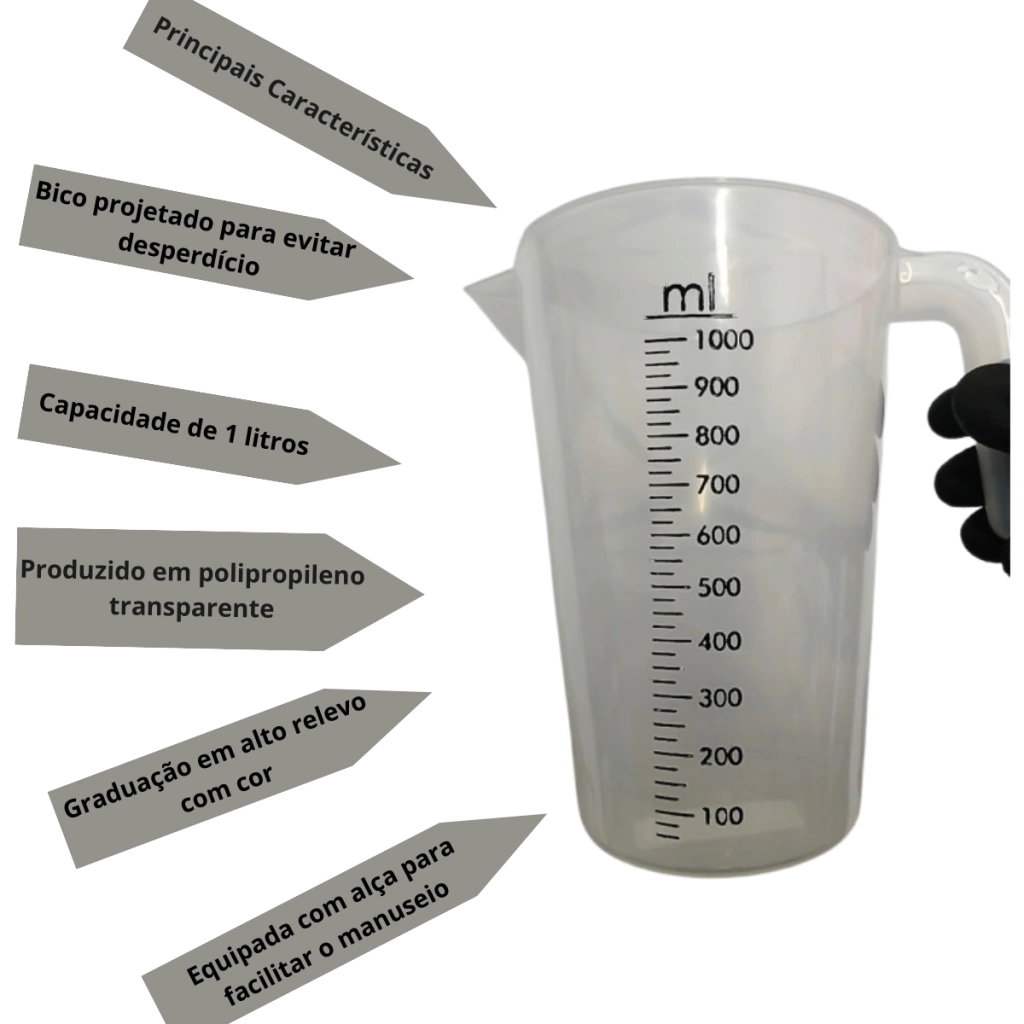 Jarra Graduada 1 Litro Alto Relevo – Medição Precisa para Líquidos e Fertilizantes Defensivos - Multitec