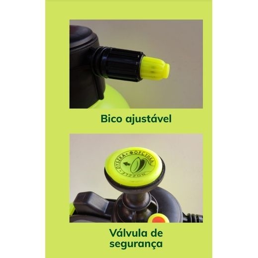 PULVERIZADOR Compressão prévia Capacidade: 2 litros Válvula de segurança: Evita que o excesso de pressão danifique o tanque ou até mesmo cause uma explosão.